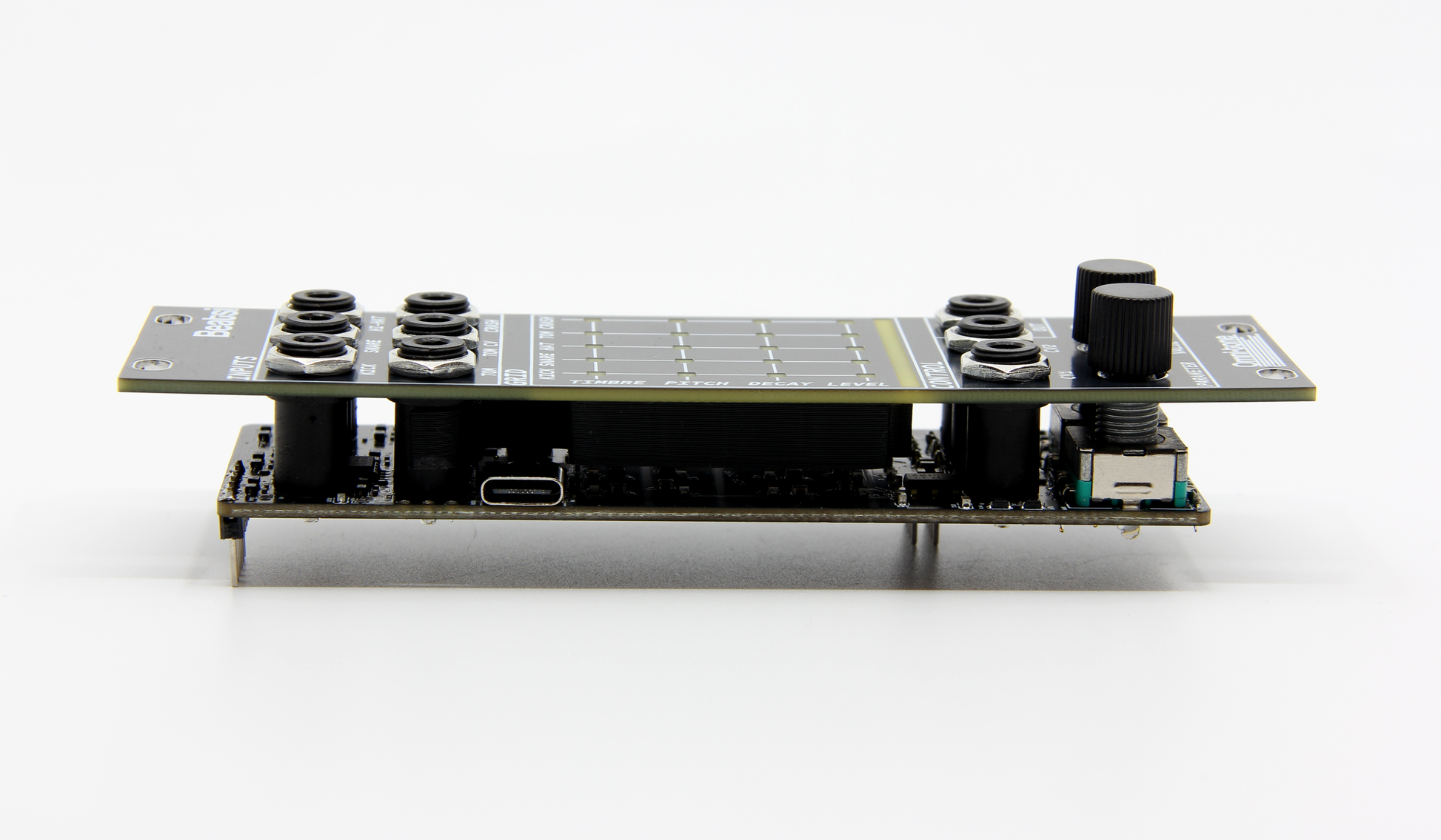 Beatsi’s interface allows for control over individual piece Timbre, Pitch, Decay, and Level. The timbres are organized into 3 kits: an orange (acoustic) kit, a blue (low-fi) kit, and a green (alien) kit. Within these kits the timbres blend smoothly into one another allowing for seamless modulation. Beatsi has two CV modulation inputs which are assignable to any and all parameters with individual attenuversion. Beatsi may be small, but it packs a serious punch.