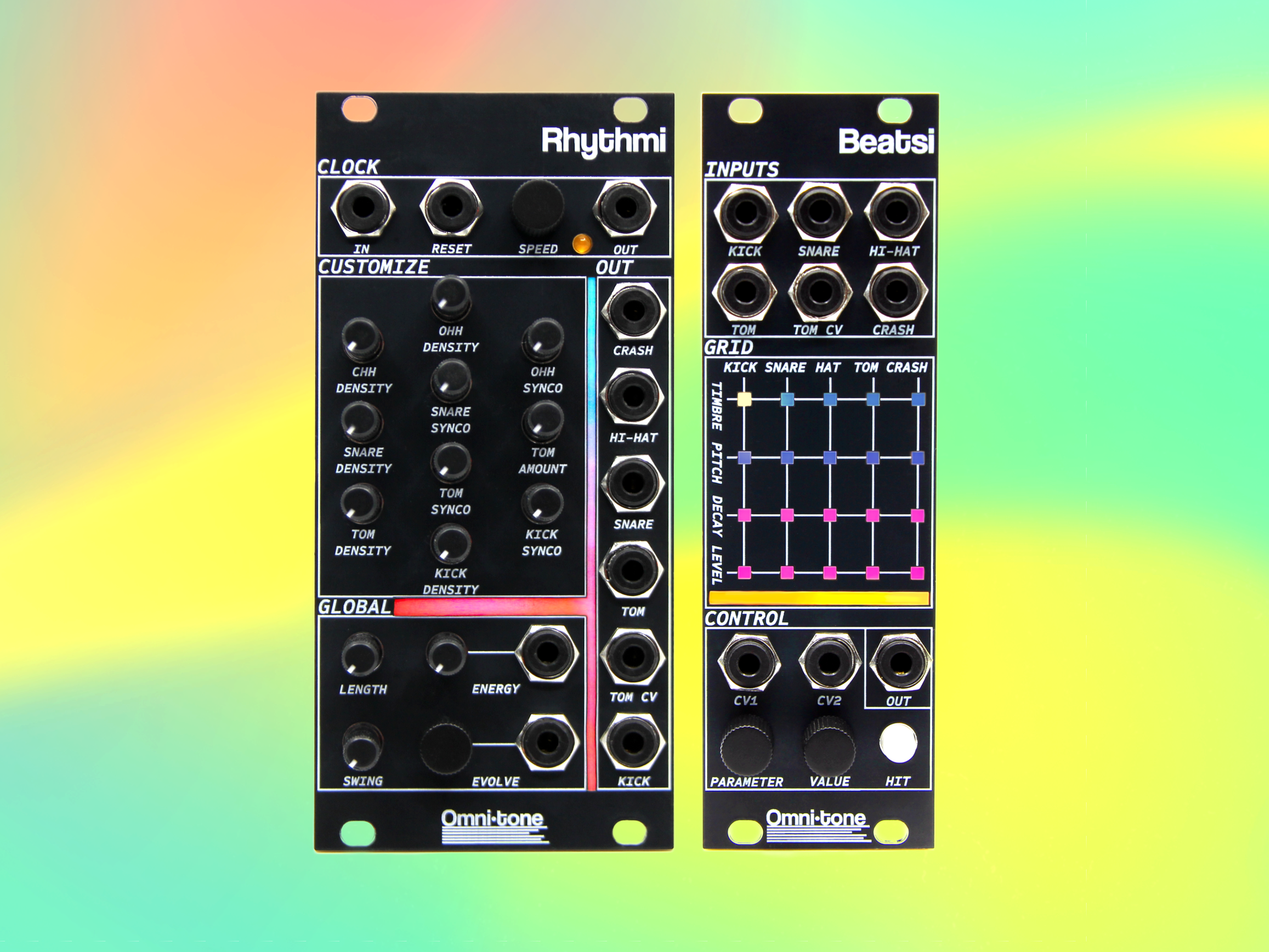 Designed alongside each other, they make the perfect percussive pair! Get Rhythmi and Beatsi together and get 10% off. Connect them together via the included jumper cable on the back to create a powerful eurorack drum machine!